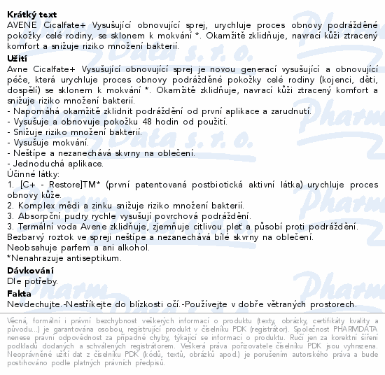 AVENE Cicalfate+ Vysušující obnovující sprej, urychluje proces obnovy podrážděné pokožky celé rodiny, se sklonem k mokvání *. Okamžitě zklidňuje, navrací kůži ztracený komfort a snižuje riziko množení bakterií.