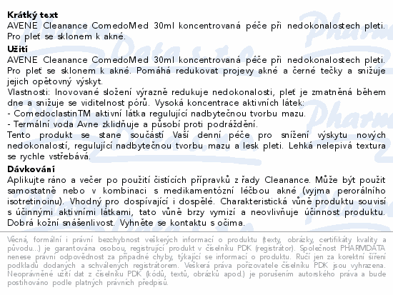 AVENE Cleanance ComedoMed 30ml koncentrovaná péče při nedokonalostech pleti. Pro pleť se sklonem k akné.