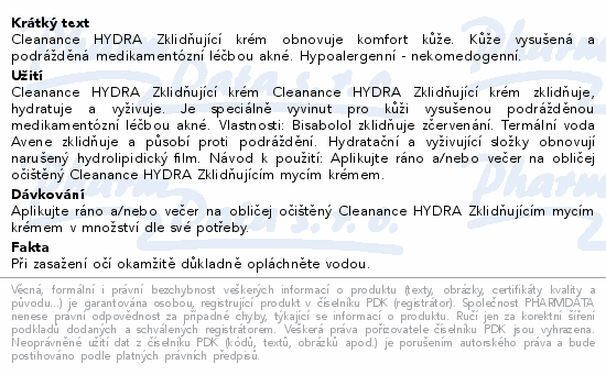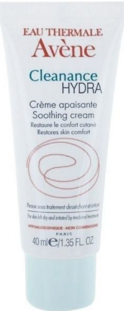 Cleanance HYDRA Zklidňující krém obnovuje komfort kůže. Kůže vysušená a podrážděná medikamentózní léčbou akné. Hypoalergenní - nekomedogenní.