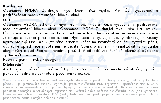 Cleanance HYDRA Zklidňující mycí krém. Bez mýdla. Pro kůži vysušenou a podrážděnou medikamentózní léčbou akné.