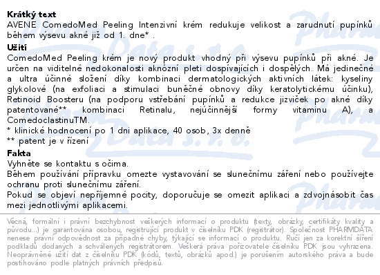 AVENE ComedoMed Peeling Intenzivní krém redukuje velikost a zarudnutí pupínků během výsevu akné již od 1. dne* .