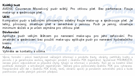 AVENE Couvrance Mozaikový pudr světlý. Pro citlivou pleť. Bez parfemace. Fixuje make-up a sjednocuje pleť.