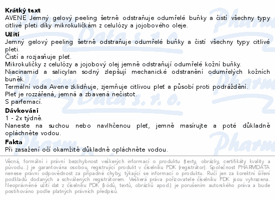AVENE Jemný gelový peeling šetrně odstraňuje odumřelé buňky a čistí všechny typy citlivé pleti díky mikrokuličkám z celulózy a jojobového oleje.