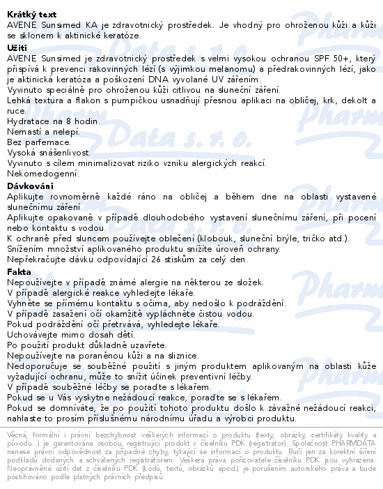 AVENE Sunsimed KA je zdravotnický prostředek. Je vhodný pro ohroženou kůži a kůži se sklonem k aktinické keratóze.
