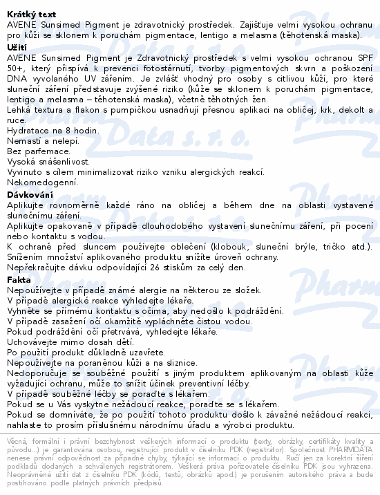 AVENE Sunsimed Pigment je zdravotnický prostředek. Zajišťuje velmi vysokou ochranu pro kůži se sklonem k poruchám pigmentace, lentigo a melasma (těhotenská maska).