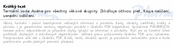 Termální voda Avéne pro všechny věkové skupiny. Zklidňuje citlivou pleť, fixuje nalíčení, usnadní odlíčení.