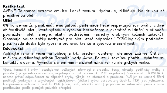 AVENE Tolerance extreme emulze. Lehká textura. Hydratuje, zklidňuje. Na citlivou až přecitlivělou pleť.