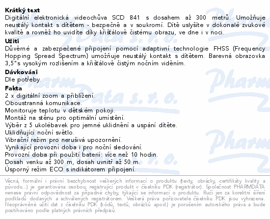 Digitální elektronická videochůva SCD 841 s dosahem až 300 metrů. Umožňuje neustálý kontakt s dítětem - bezpečně a v soukromí. Dítě uslyšíte v dokonalé zvukové kvalitě a rovněž ho uvidíte díky křišťálově čistému obrazu, ve dne i v noci.
