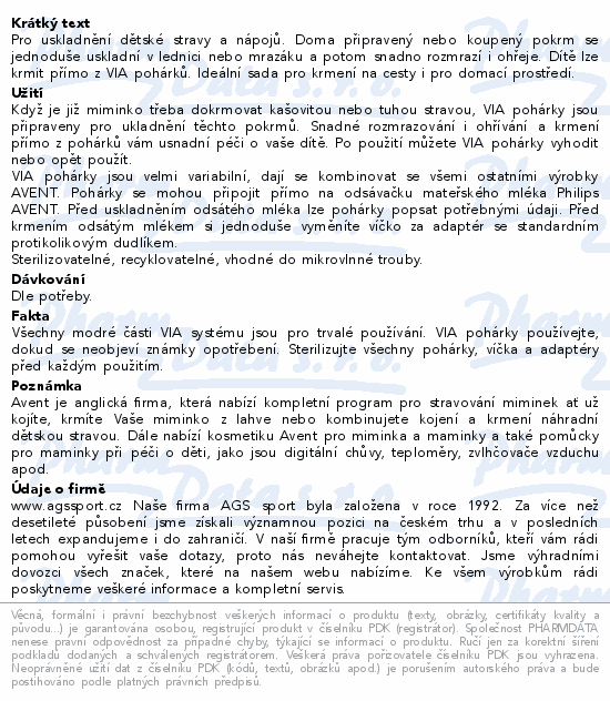 Pro uskladnění dětské stravy a nápojů. Doma připravený nebo koupený pokrm se jednoduše uskladní v lednici nebo mrazáku a potom snadno rozmrazí i ohřeje. Dítě lze krmit přímo z VIA pohárků. Ideální sada pro krmení na cesty i pro domací prostředí.