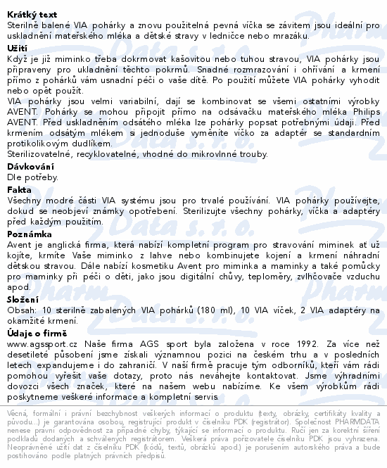AVENT VIA Zásobníky 10x180ml s víčky+adaptér