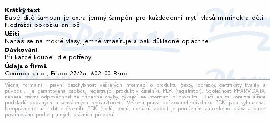 Babé dítě šampon je extra jemný šampón pro každodenní mytí vlasů miminek a dětí. Nedráždí pokožku ani oči.
