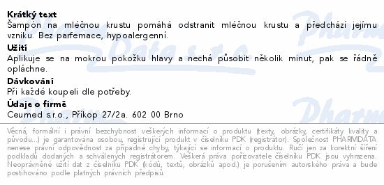Šampón na mléčnou krustu pomáhá odstranit mléčnou krustu a předchází jejímu vzniku. Bez parfemace, hypoalergenní.