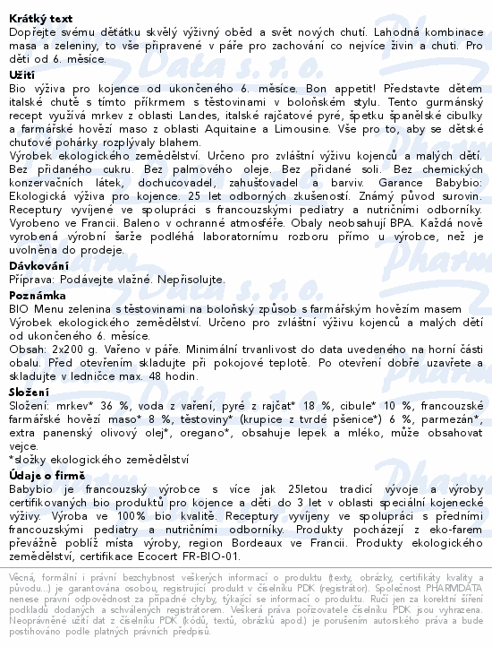 BABYBIO zeleni+boloň.těst-hovězí maso 6m+ 2x200g