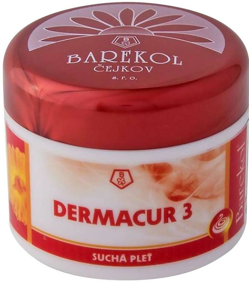 Lehký výživný mastný krém vynikajících vlastností. Poměr vodní a olejové složky odpovídá přirozené hodnotě mladé zdravé pleti. Obsahuje vitamin E, panthenol a speciální měsíčkový extrakt. Dermacur 3 je noční krém a zároveň denní krém pro suchou pleť.