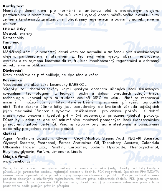 Nemastný denní krém pro normální a smíšenou pleť s avokádovým olejem, panthenolem a vitamínem E. Pro svůj velmi vysoký obsah měsíčkového extraktu a to zejména karotenoidů zajišťujících mnohostranný regenerační a ochranný účinek, je velmi oblíben.