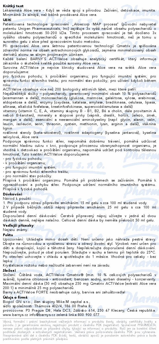 Barnys ACTIValoe lékárenská aloe 2x500ml
