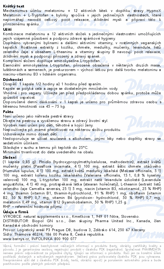 Barnys HypnoX MELATONIN+L-tryptofan cps.30