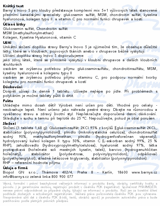 Nejlépe hodnocený v nezávislém testu kloubní výživy dTest 5/2016. Barny´s Inovo 5 pro klouby představuje komplexní mix 5+1 výživových látek stanovené předními specialisty.