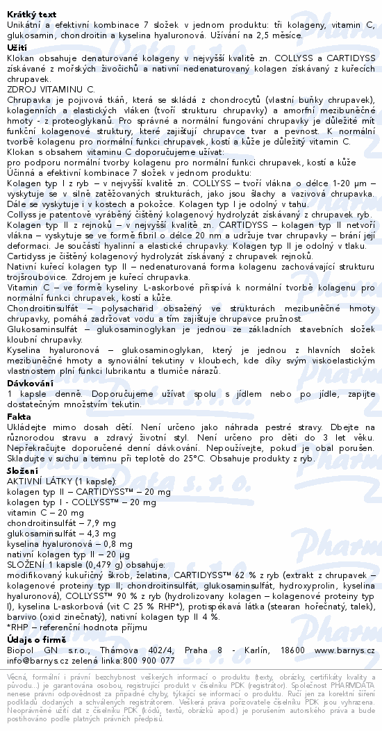 Barnys Klokan je doplněk stravy, který obsahuje unikátní a efektivní kombinace 7 složek v jednom produktu: tři kolageny, vitamin C, glukosamin, chondroitin a kyselinu hyaluronovou z bezpečného přírodního zdroje.