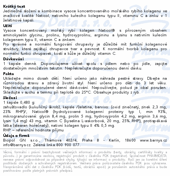Jedinečné složení a kombinace vysoce koncentrovaného mořského rybího kolagenu ve značkové kvalitě Naticol, nativního kuřecího kolagenu typu II, vitaminu C a zinku v 1 želatinové kapsli.