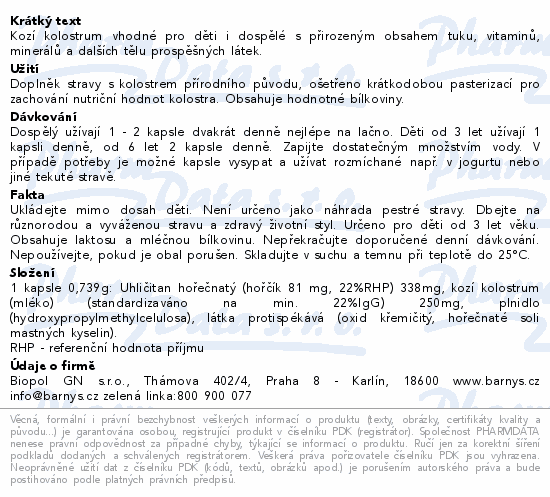 Barnys Kozí kolostrum, 60 kapslí