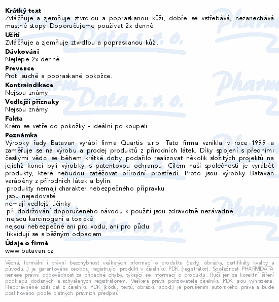 Zvláčňuje a zjemňuje ztvrdlou a popraskanou kůži, dobře se vstřebává, nezanechává mastné stopy. Doporučujeme používat 2x denně.