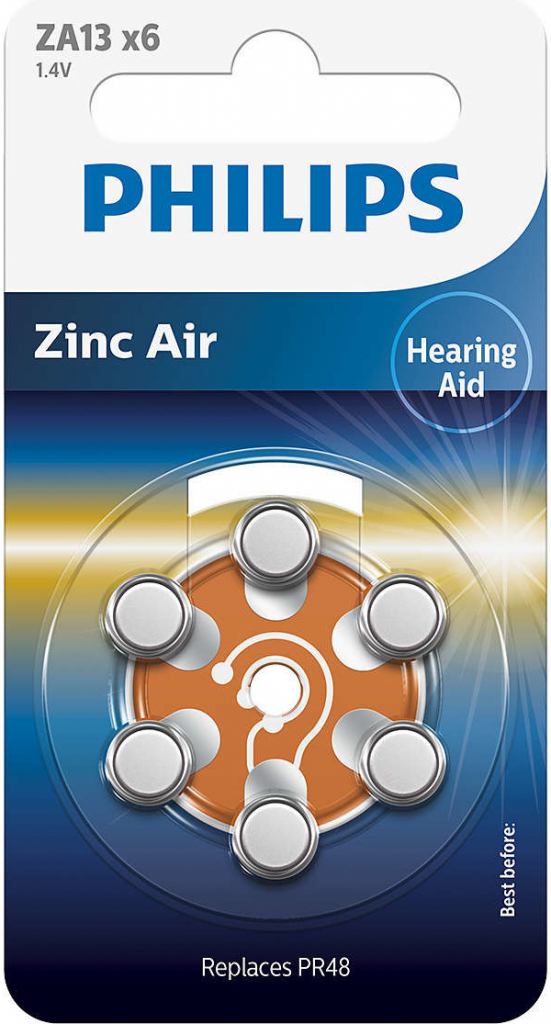 Zinc air baterie pro použití v přístrojích pro sluchově postižené (naslouchadlech) zajišťuje energii pro elektronické součástky naslouchadla. Balení obsahuje 6 baterií. Podává dlouhý výkon v naslouchacích zařízeních.