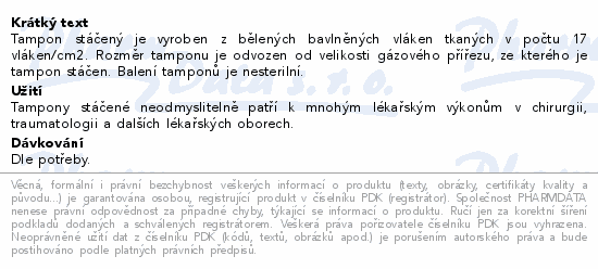 Tampon stáčený je vyroben z bělených bavlněných vláken tkaných v počtu 17 vláken/cm2. Rozměr tamponu je odvozen od velikosti gázového přířezu, ze kterého je tampon stáčen. Balení tamponů je nesterilní.