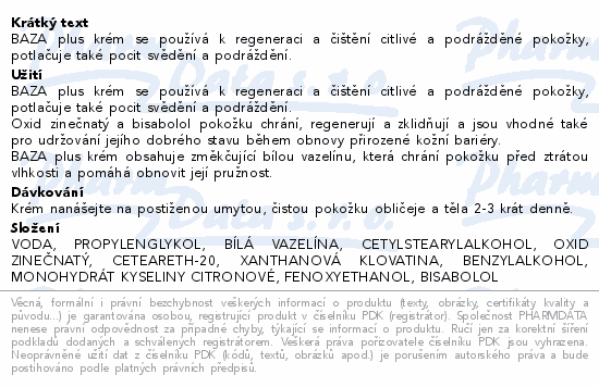 BAZA plus krém se používá k regeneraci a čištění citlivé a podrážděné pokožky, potlačuje také pocit svědění a podráždění.