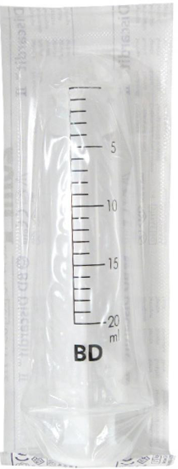 Dvoudílná injekční stříkačka s dobře čitelnou stupnicí a lehkým a přesným pohybem pístu. Velikost injekční stříkačky je 20 ml.