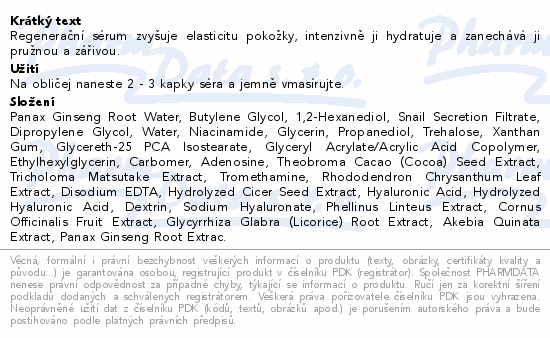 Regenerační sérum zvyšuje elasticitu pokožky, intenzivně ji hydratuje a zanechává ji pružnou a zářivou.