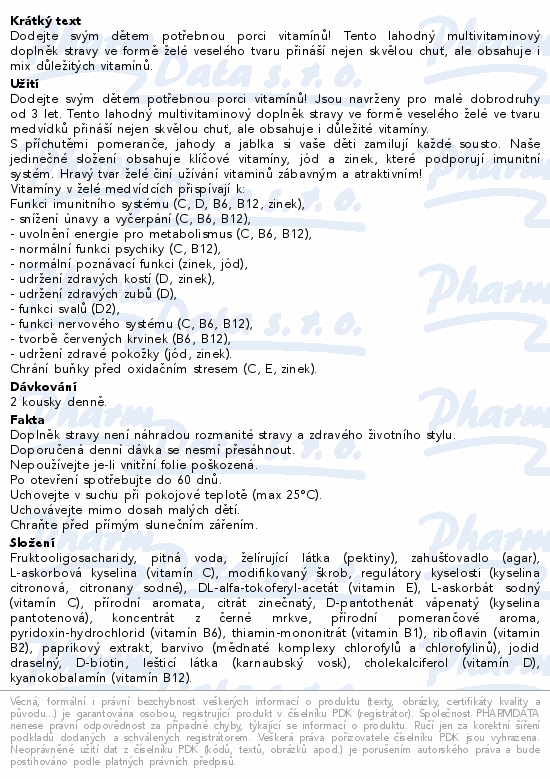 Dodejte svým dětem potřebnou porci vitamínů! Tento lahodný multivitaminový doplněk stravy ve formě želé veselého tvaru přináší nejen skvělou chuť, ale obsahuje i mix důležitých vitamínů.