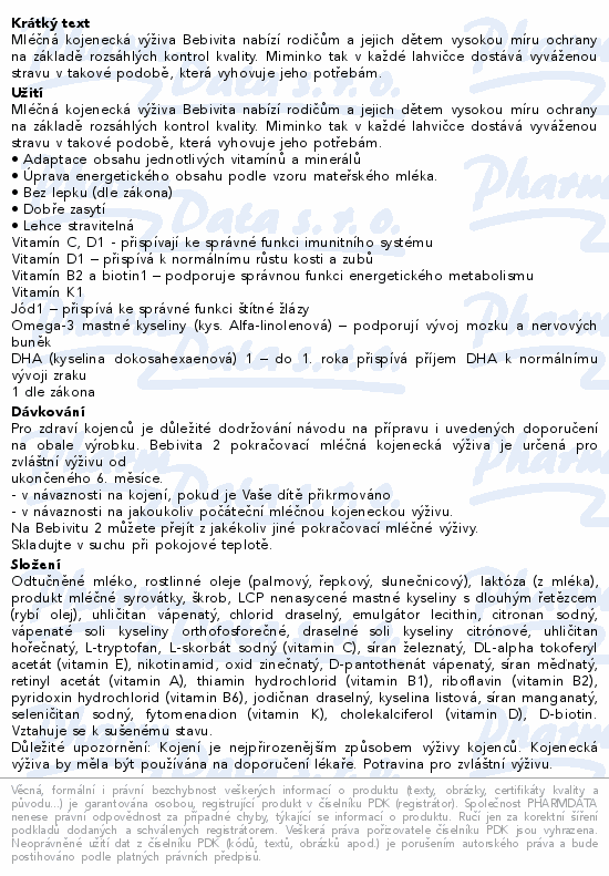 Bebivita 2 mléčná kojenecká výživa 6+m 500g