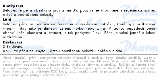 Belodex je pěna obsahující provitamín B5, používá se k ochraně a regeneraci suché, citlivé a podrážděné pokožky.