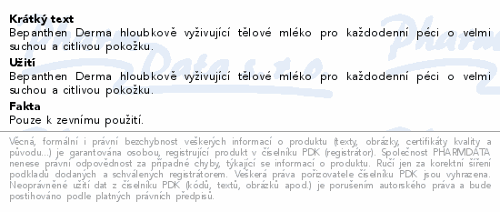 Bepanthen Derma hloubkově vyživující tělové mléko pro každodenní péci o velmi suchou a citlivou pokožku.