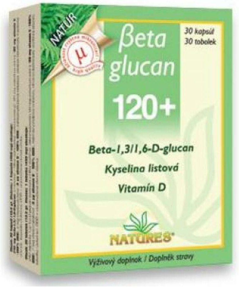 Beta Glucan 120+ obsahuje vysoce čistý (čistota 93%), mikronizovaný beta glucan z Hlívy ústřičné + kyselinu listovou (30% DDD) a vitamín D (100% DDD) v jedné tobolce.