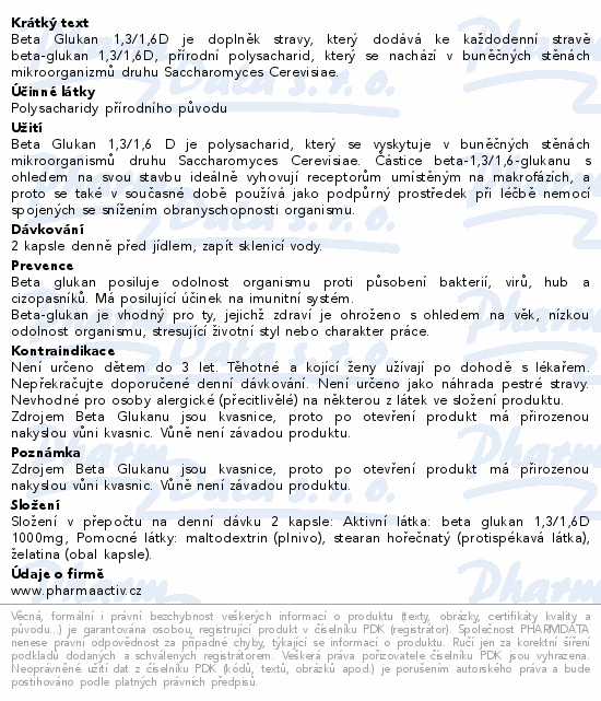 Beta Glukan 1,3/1,6D je doplněk stravy, který dodává ke každodenní stravě beta-glukan 1,3/1,6D, přírodní polysacharid, který se nachází v buněčných stěnách mikroorganizmů druhu Saccharomyces Cerevisiae.