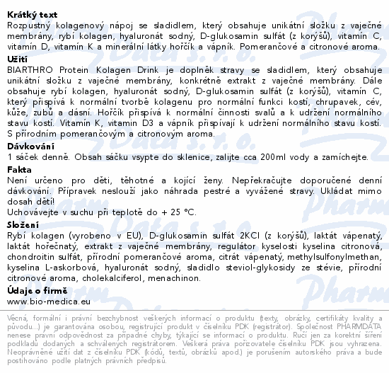 Biarthro protein Kolagen drink 30 sáčků