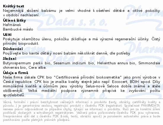Nejjemnější složení balzámu je velmi vhodné k ošetření dětské a citlivé pokožky v období nachlazení.