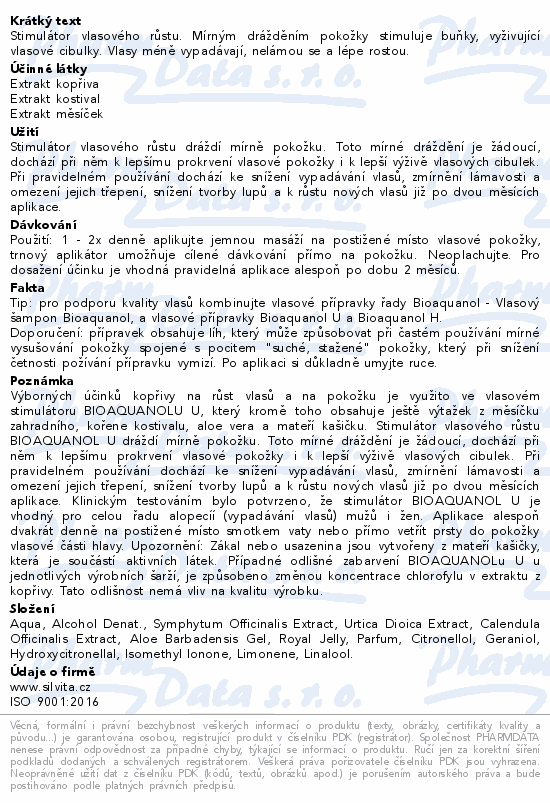 Bioaquanol U stimulátor vlas.růstu 250ml