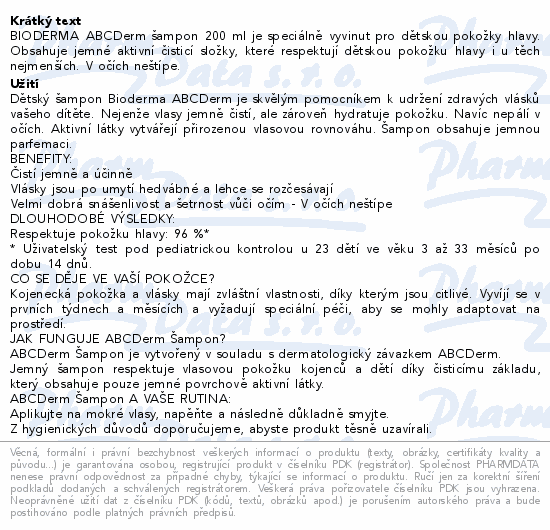 BIODERMA ABCDerm šampon 200 ml je speciálně vyvinut pro dětskou pokožky hlavy. Obsahuje jemné aktivní čisticí složky, které respektují dětskou pokožku hlavy i u těch nejmenších. V očích neštípe.