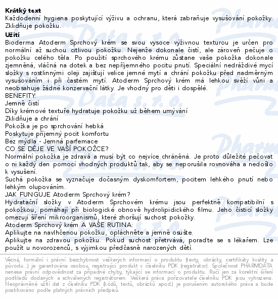 Každodenní hygiena poskytující výživu a ochranu, která zabraňuje vysušování pokožky. Zklidňuje pokožku.