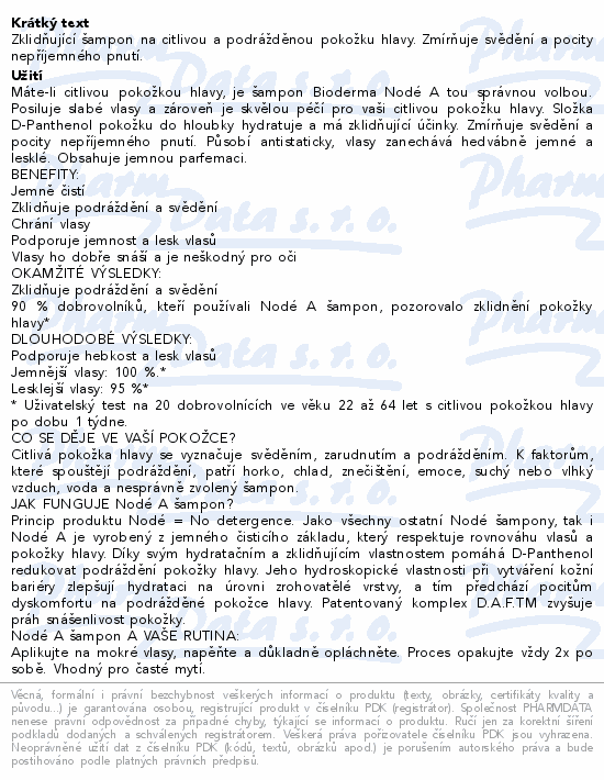 Zklidňující šampon na citlivou a podrážděnou pokožku hlavy. Zmírňuje svědění a pocity nepříjemného pnutí.