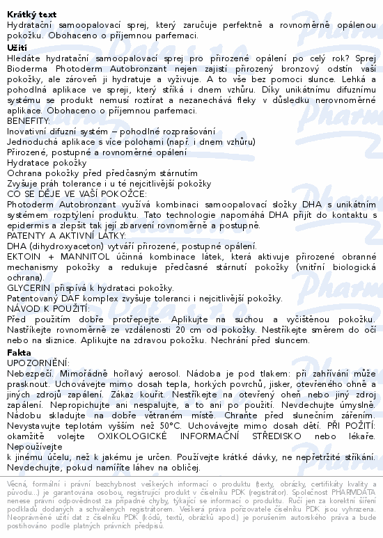 Hydratační samoopalovací sprej, který zaručuje perfektně a rovnoměrně opálenou pokožku. Obohaceno o příjemnou parfemaci.