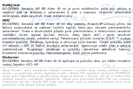 BIODERMA Sensibio AR BB Krém 40 ml je první multifunkční péče pro citlivou a reaktivní pleť se sklonem k začervenání či pleť s rosaceou. Intenzivní přechodné začervenání, stálá zarudnutí, malé viditelné cévy.
