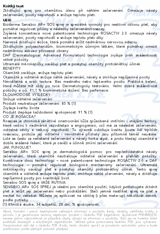 Zklidňující sprej pro okamžitou úlevu při náhlém začervenání. Omezuje návaly začervenání, pocity nepohodlí a snižuje teplotu pleti.