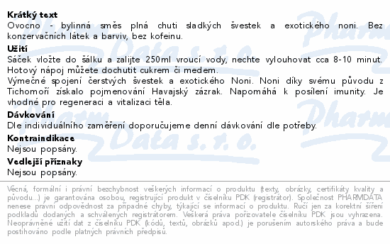 Ovocno - bylinná směs plná chuti sladkých švestek a exotického noni. Bez konzervačních látek a barviv, bez kofeinu.