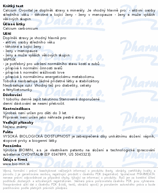 Calcium Ovovital je doplněk stravy s minerály. Je vhodný hlavně pro: - aktivní osoby středního věku - těhotné a kojící ženy - ženy v menopauze - ženy a muže vyšších věkových skupin.
