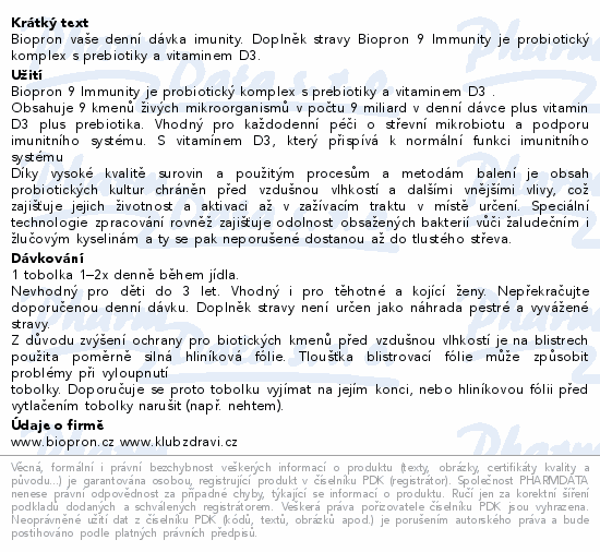 Biopron vaše denní dávka imunity. Doplněk stravy Biopron 9 Immunity je probiotický komplex s prebiotiky a vitaminem D3.