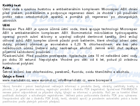 Ústní voda s vysokou hustotou a antibakteriálním komplexem Microrepair ABX chrání před plakem, podrážděním a podporuje regeneraci dásní. Je vhodná i při používání protéz nebo ortodontických aparátů a pomáhá při regeneraci po chirurgických zákrocích.